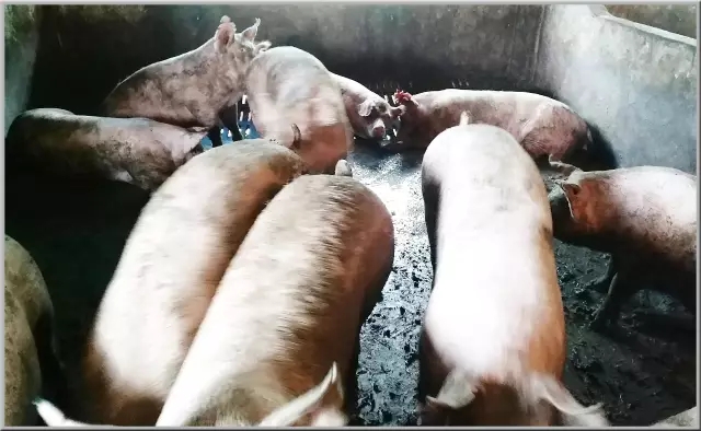 由于連日雨水,圈舍難于清理,豬體較臟。