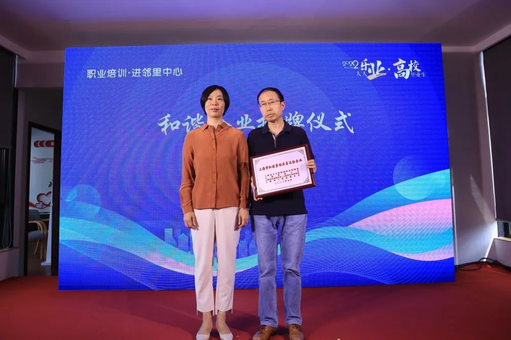我司作為嘉定區華亭鎮唯一上榜企業,授牌儀式活動在嘉定區華亭鎮“我嘉.鄰里中心”舉行,出席本次活動的領導有嘉定區人力資源社會保障局黨委書記、局長王曉燕,嘉定區華亭鎮黨委書記何蓉,華亭鎮黨委副書記、鎮長張愛華,華亭鎮人大副主席、總工會主席陸海川等多位領導,我司總經理蘇俊黎代表公司參加了活動并接受授牌。