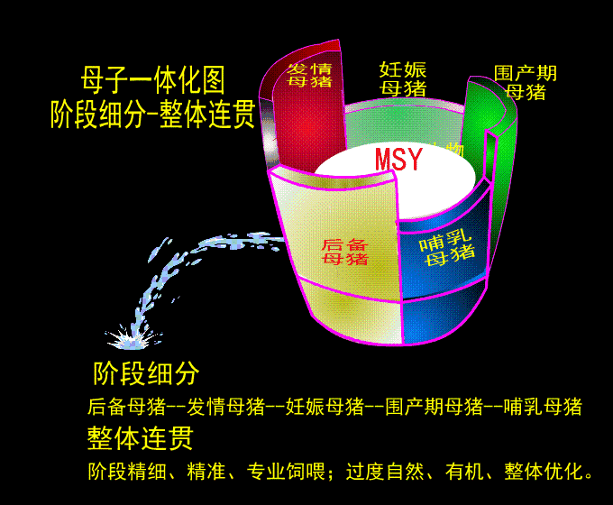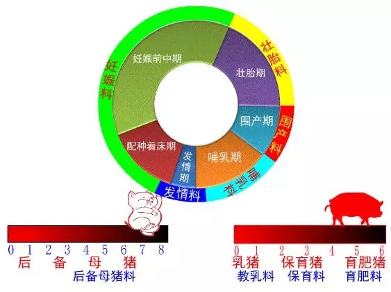 根據(jù)母豬繁殖生理、母豬繁殖病理、胎兒生長發(fā)育、母仔關(guān)系、飼養(yǎng)管理、動物營養(yǎng)、飼料工藝、生產(chǎn)環(huán)控等特點(diǎn),現(xiàn)代雜交瘦肉性母豬必須“階段細(xì)分、整體連貫”,即階段精細(xì)、精準(zhǔn)、專業(yè)飼喂;過渡自然、有機(jī)、整體優(yōu)化。